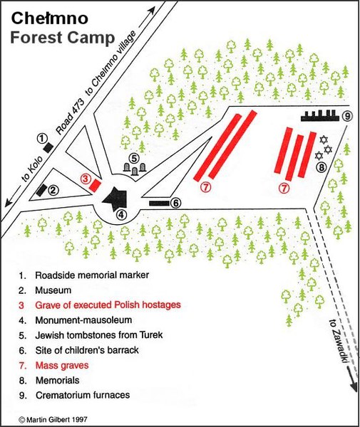 Lage der Gedenkstätte unweit von Koło entfernt...